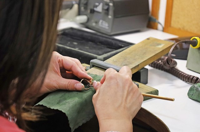 優柔不断な私がデザインから悩んでいたらアドバイスを下さりとても可愛いのが出来て大満足です。指輪が出来ていくまでの工程も知れて実際にやるのは難しかったけどとにかくいろいろとワクワクしました。