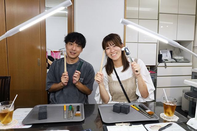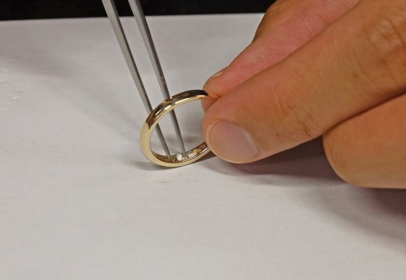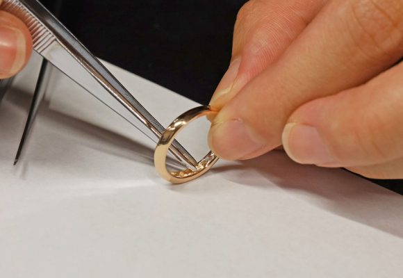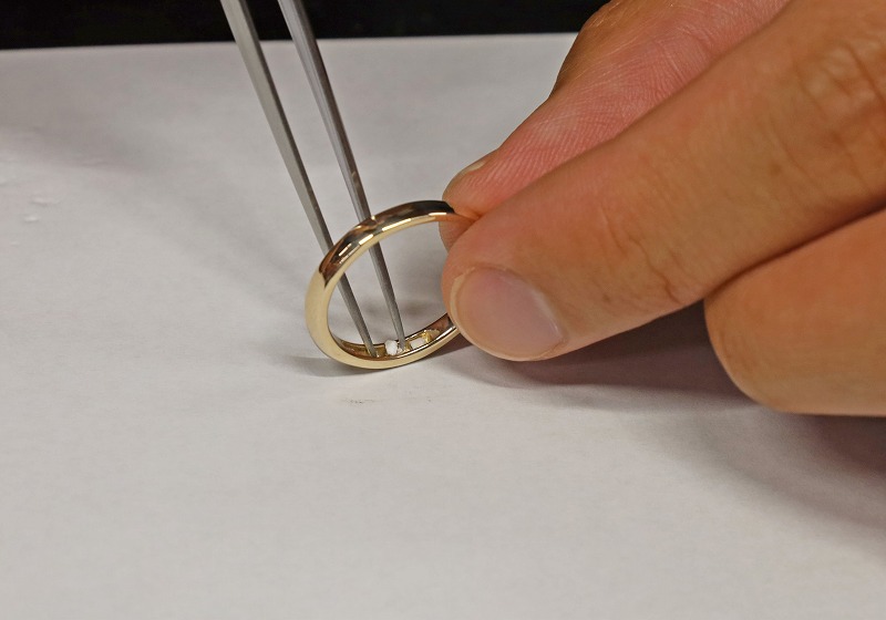 今回のお客様はご家族でイエローゴールドとピンクゴールドでペアの遺骨リングを作られました。使いやすくスタイリッシュに斜めラインを入れられ素敵なリングに仕上がっております。