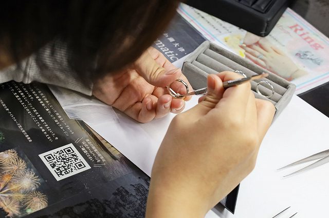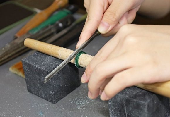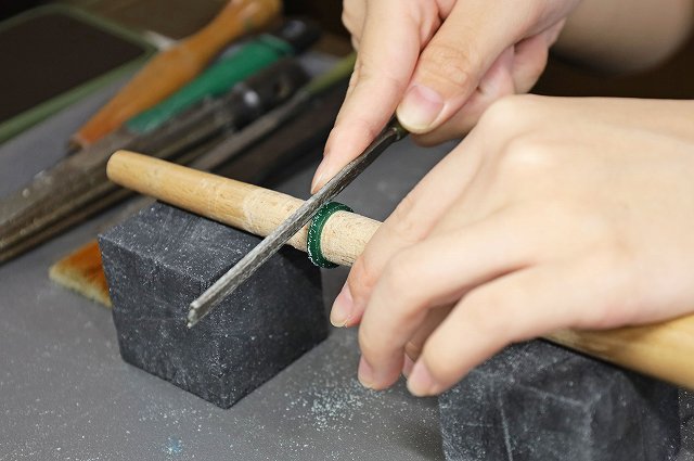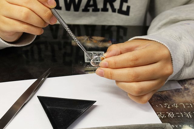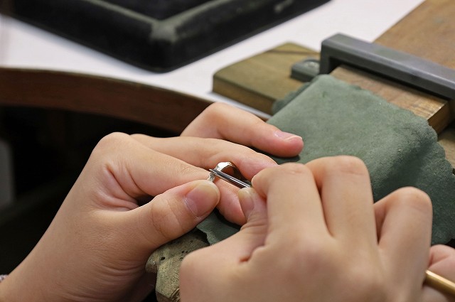 トップ>オーダー&リフォーム>手作り遺骨リング 手作り遺骨リング 今回のお客様は遺骨リングをお作りされました。表面をヤスリで不規則に削られオシャレなデザインと甲丸のシンプルなデザインデイリーユースしやすいリングに仕上がりました。 もどる