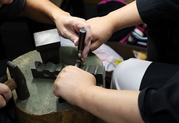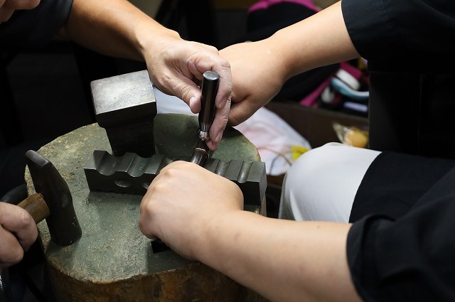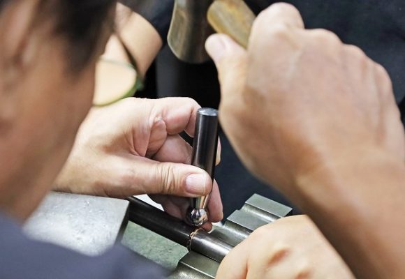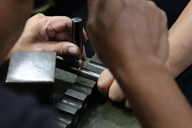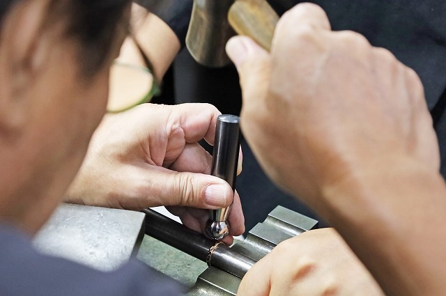 全体に不規則な鎚目模様とつや消し加工を施し一つとして同じデザインは存在しない唯一無二のデザインに仕上がりました。