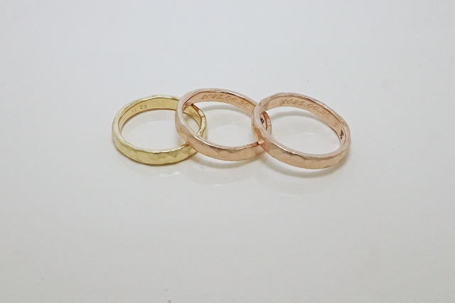 イエローゴールドとピンクゴールドで合計3本のリングを制作させていただきました(^^♪