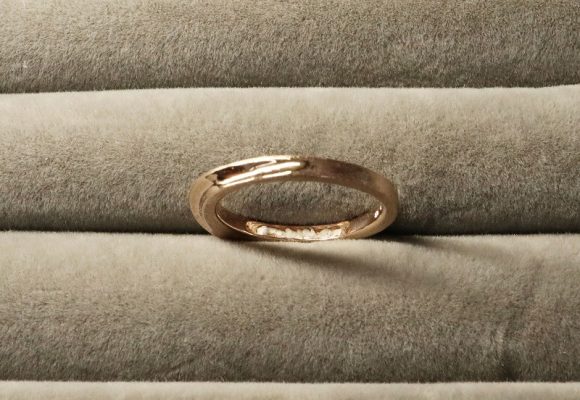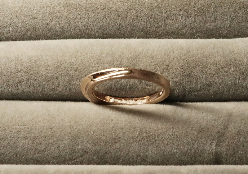 今回のお客様はメールでやり取りさせていただいた茨城県にお住いのお客様までした。斜めに掘り下げたアシンメトリーなデザインで、シンプルながらスタイリッシュでデイリーユースしやすい素敵なデザインに仕上がりました。