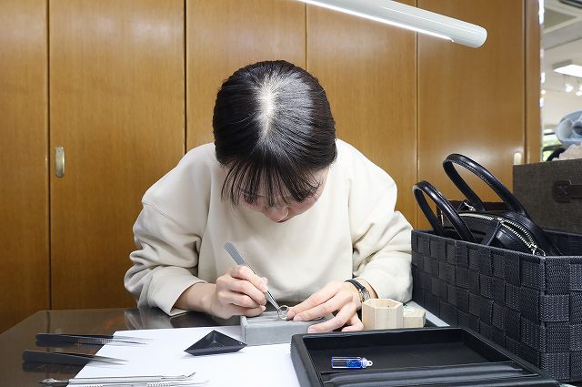 今回のお客様は神奈川県横浜市からお越しのお客様です。イエローゴールドでS字のリングを作られ、斜めにミル打ちと面取りをされているのでシャープな中にも可愛らしさを感じる素敵なリングに仕上がりました。