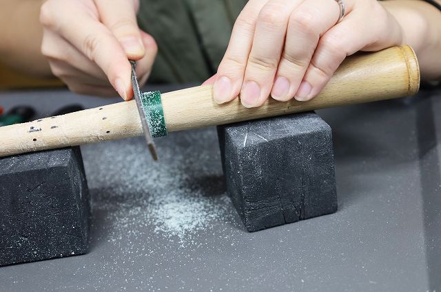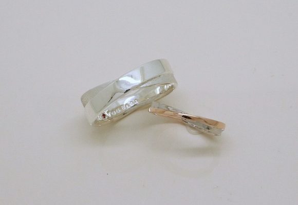 (今回のお客様は金属のコンビネーションが美しくクロスがかっこよく引き立つ素敵なデザインの結婚指輪に仕上がりました)