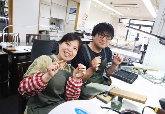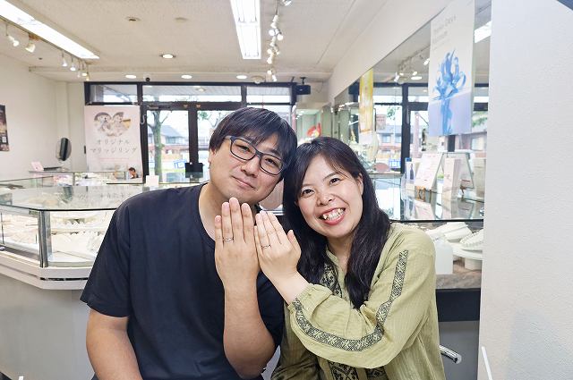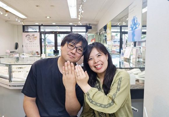トップ>お客様の声一覧>結婚指輪>滋賀県甲賀市からお越しの先輩カップル 手作りマリッジリング 滋賀県甲賀市からお越しの先輩カップル 手作りマリッジリング お客様のご感想✿ 2人で制作することが出来て非常に良い思い出となりました。 (今回のお客様は滋賀県甲賀市からお越しのお客様で、甲丸のシンプルなデザインの結婚指輪を手作りされました。奥様はダイアモンドを入れられ可愛く、お二人の想いのこもった素敵な結婚指輪に仕上がりました。) 一覧へもどる