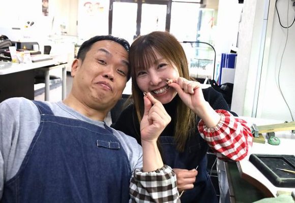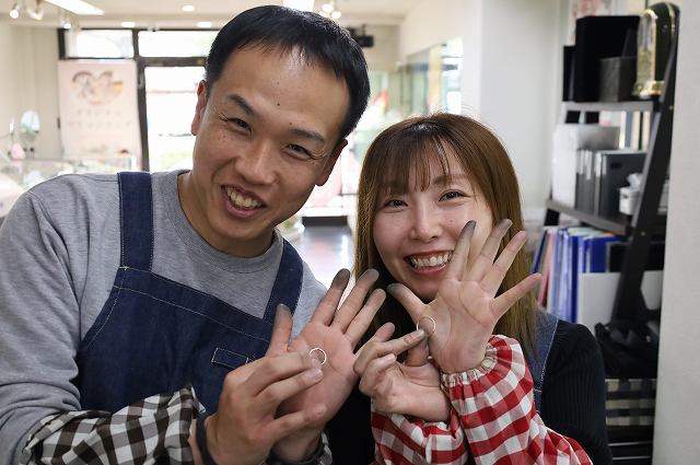 トップ>お客様の声一覧>オリジナルジュエリー>滋賀県守山市からお越しの山中様 手作りペアリング 滋賀県守山市からお越しの山中様 手作りペアリング お客様のご感想✿ 欲しかったペアリングを一緒に作れてうれしかったです。突然飛び込むで入ったのにしっかりしたリングを作れてよかったです。 (今回のお客様は斜めにラインの入ったシンプルなリングをお作りされました 素材もピンクゴールドを選ばれ可愛らしくシンプルながら存在感のある素敵な仕上がりになりました。) 一覧へもどる